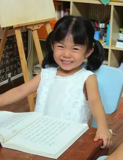 柚子:目前七岁,小学一年级!两岁时妈妈带着参加了一年的周六读书会,读的是《学庸论语》,因为孩子小,老师和妈妈对孩子并没有什么求,所以柚子有时在妈妈身上摸爬滚打,有时在教室走动走动,始终不变的只有一点:妈妈每周都来,同时每次课上不管柚子怎么动,妈妈都能很安定的自己读书!三岁半柚子来了早教园,因为有之前一年和老师相处的时间,所以对老师和早教园完全没有适应期,来的第一天开始无论是吃饭,生活,读书都适应的非常好!而柚子在早教园的两年半,也因为早期的基础和妈妈在家的功夫,成为了早教园最有学习力的孩子之一!包本的时候,遇到前后容易串的,或者是容易错的地方,只要读五六遍就记住了,而平均同龄的孩子则往往需要几十遍!两年半的时间,柚子包本了《学庸论语》《孟子》《老子庄子选》约十万字经典,2020年下半学期利用周末时间熟读了《易经》,整本书两万五千字,提醒约三百处!2021年上半学期开始利用周末时间来早教园读《诗经》,基本就是一部读经机,一本书,完全不用老师指导,现在开学两个月,整部《诗经》已经读的很熟了,可以自己读!同时,柚子学其他功课,比如拼音,数学,背唐诗都很容易,利用课间时间和妈妈还把半本英文《格言选》背下来了,目前正在读英文《名著选Selections From Literature》!