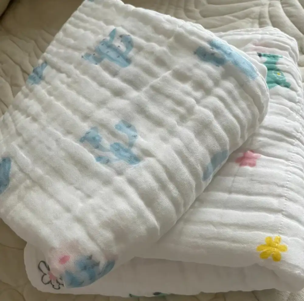 当时买的是全棉时代的6层柔纱,柔软度和吸水度都不错。而且我们用了很多年也还好好的。