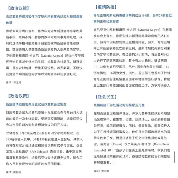 斯瓦希里语学生编辑疫情周报的部分内容