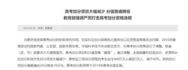 第四,省级优秀学生加分被取消;第五,思想政治品德有突出事迹加分被取消,这两项加分的取消比较彻底,归根结底这一类的加分本就缺乏量化标准。