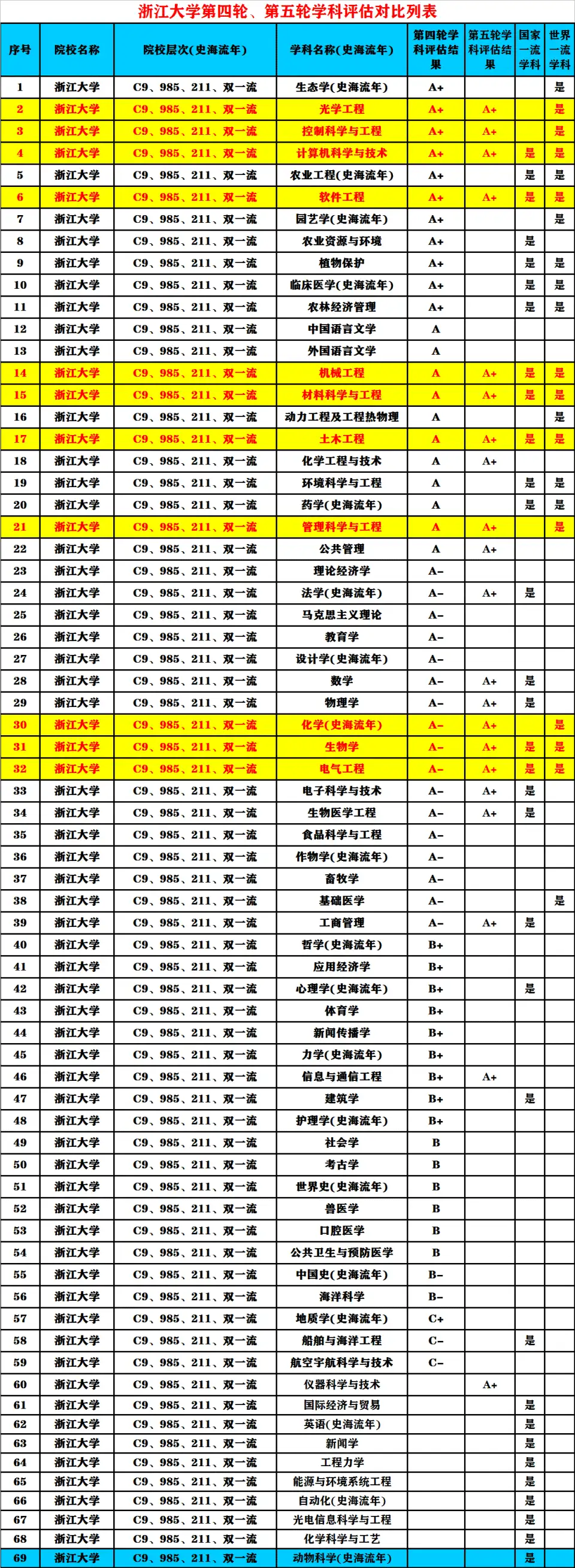 众所周知,浙江大学在第四轮学科评估中,共有11个学科被评为A+类学科,数量少于清华大学、北京大学和中国科学院大学,排名全国第四位。但是,A-类以上学科达到了39个之多,也在全国高校中名列第一位。