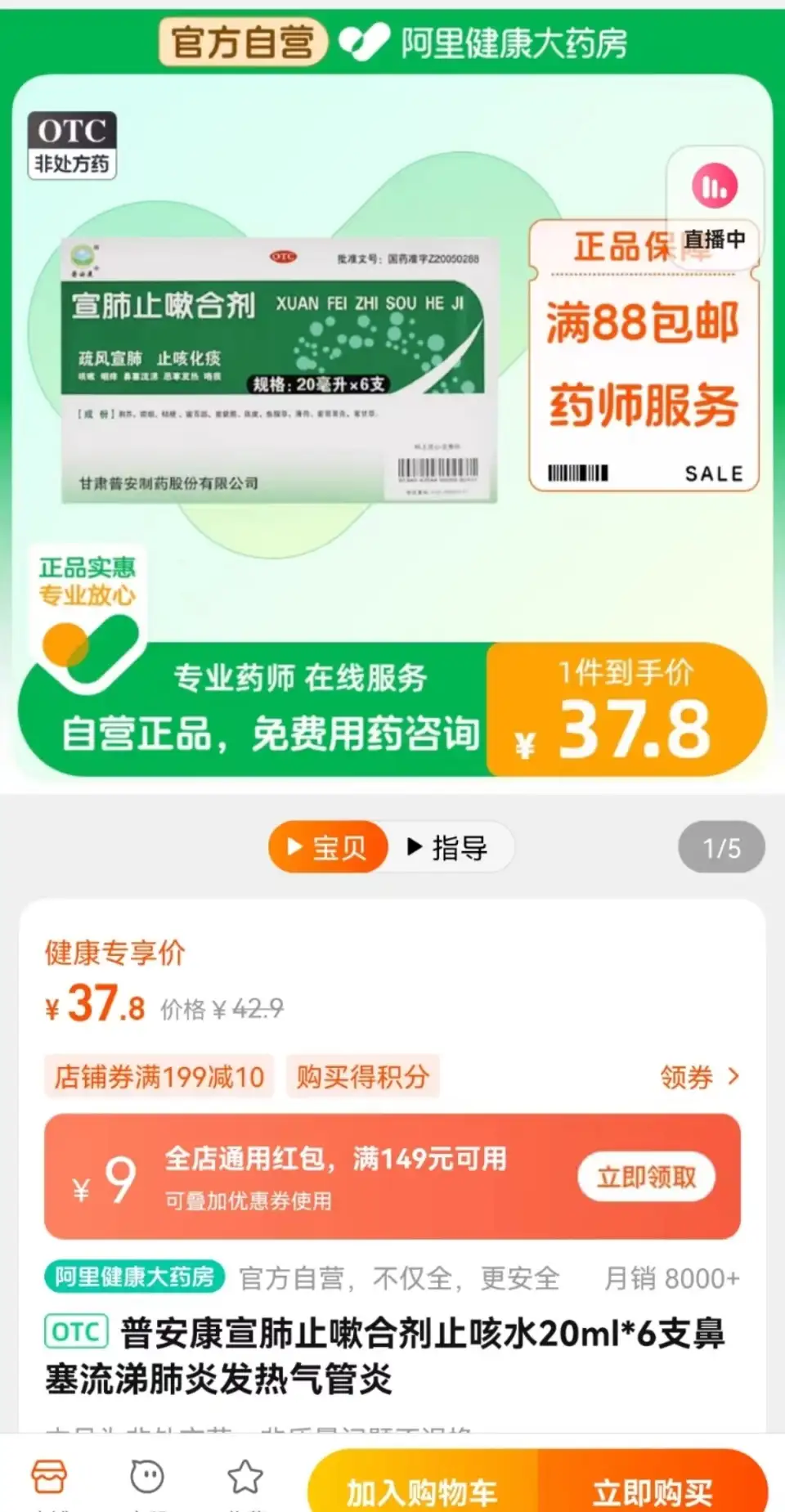 同款宣肺止咳合剂在某电商平台售价为37.8元,低于养和堂开出的价格,不过该药单并未标出宣肺止咳合剂的具体规格。