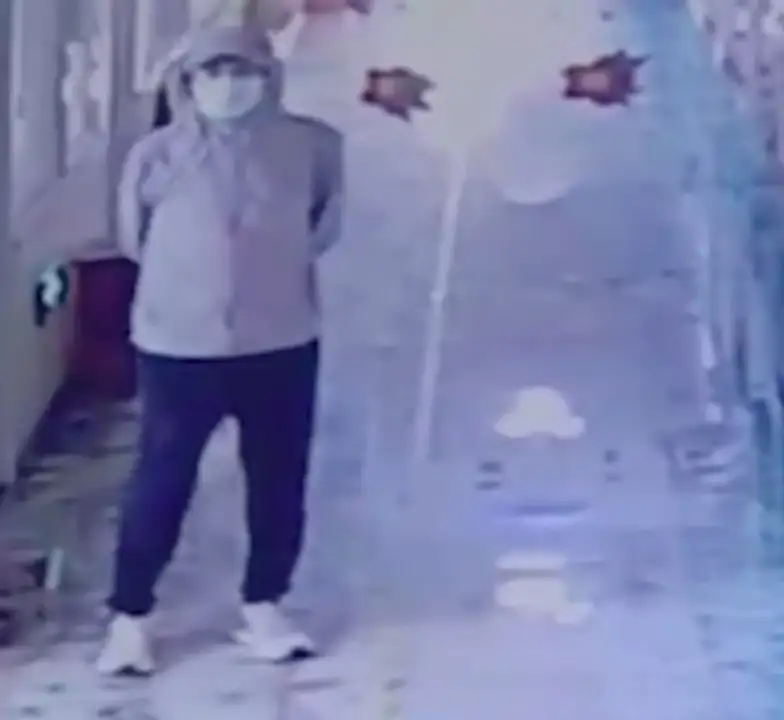 监控中,该男子骑着电动车来到幼儿园,戴着口罩和帽子将自己捂得严严实实。
