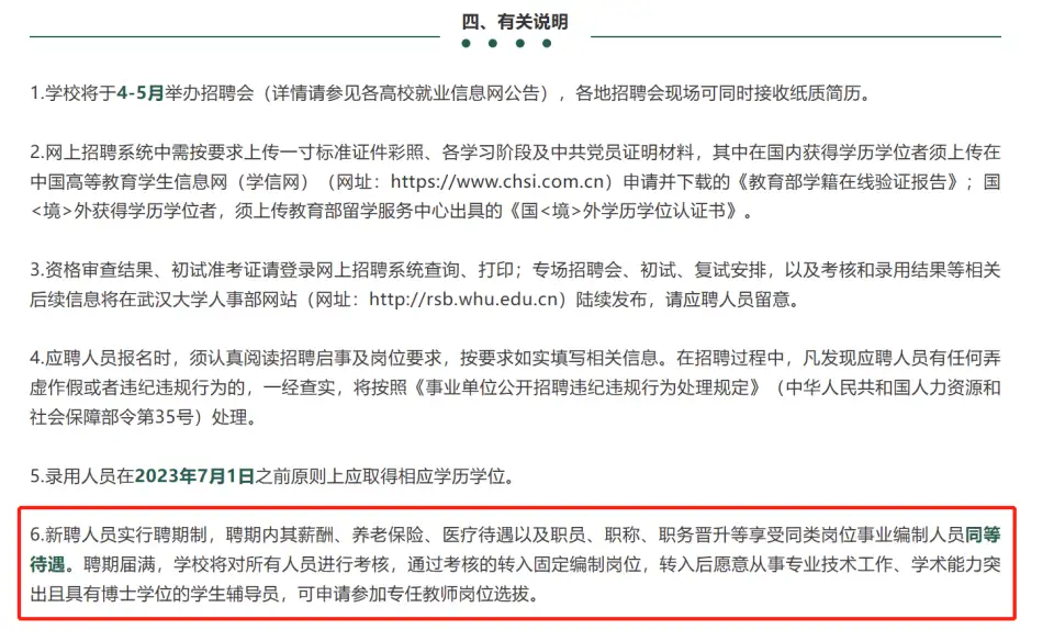 不得不说现在985高校的辅导员都内卷严重,而且武汉大学这次招聘的辅导员真的不一定有编制,因为新进入的还需要进行聘期考核,只有考核合格之后才能转为固定编制,当然如此多的博士也可以之后选择去参加专任教师的选拔,不过成功的可能性只能说很低!