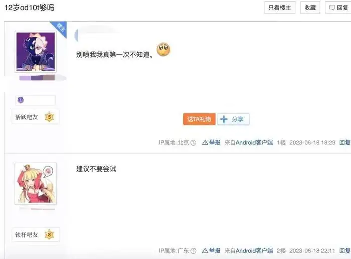 “12岁od,10t够吗?”这是记者在右美沙芬贴吧看到的帖子。“od”是过量服用药物的英文overdose的缩写,“t”是tablet药片的意思。帖子咨询的是:“12岁第一次滥用药物,吃10片右美沙芬的量够吗?”
