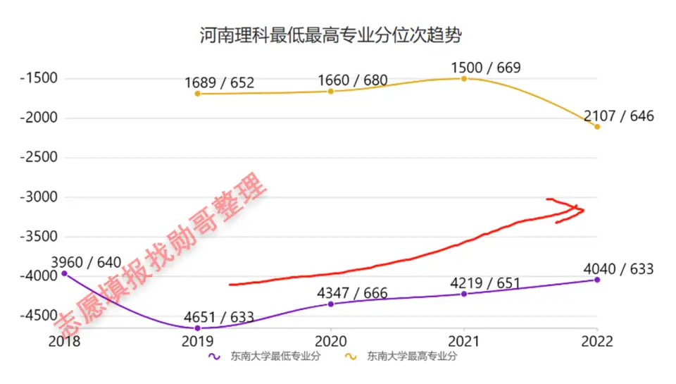 以上数据均来自学校官网,从两年的数据来看,东南大学2023年居然把土木专业,从普通类中单列出来进行招生!为什么这么做,因为东南大学整体录取分数,是非常高的。高分生对土木专业的嫌弃,真的有可能影响到东南大学的最低录取分。如下图所示:4000位次的考生,其实是有很多选择的,东南大学的最低录取分位次,从2019年开始,一路上扬,这份成绩实属不易!把土木单列,就是为了防止投档线受到影响。