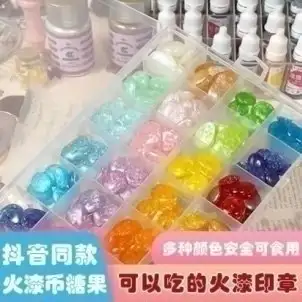 火漆印章作为一款造型多变、难度低、操作相对简单的DIY产品,在网络平台的销量相当可观,深受青少年欢迎。目前市场上所销售的火漆印章产品主要分为普通火漆印章和可食用火漆印章。普通火漆印章主要包括印章头、蜡烛、彩色火漆蜡粒、融蜡勺等,材质一般以塑料、金属、蜡为主。可食用火漆印章是将普通火漆印章中的彩色火漆蜡粒换成糖果,将糖融化后用印章按压形成各种造型的糖果。