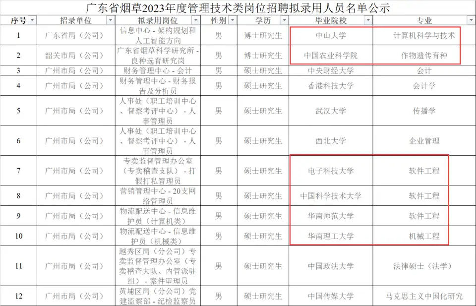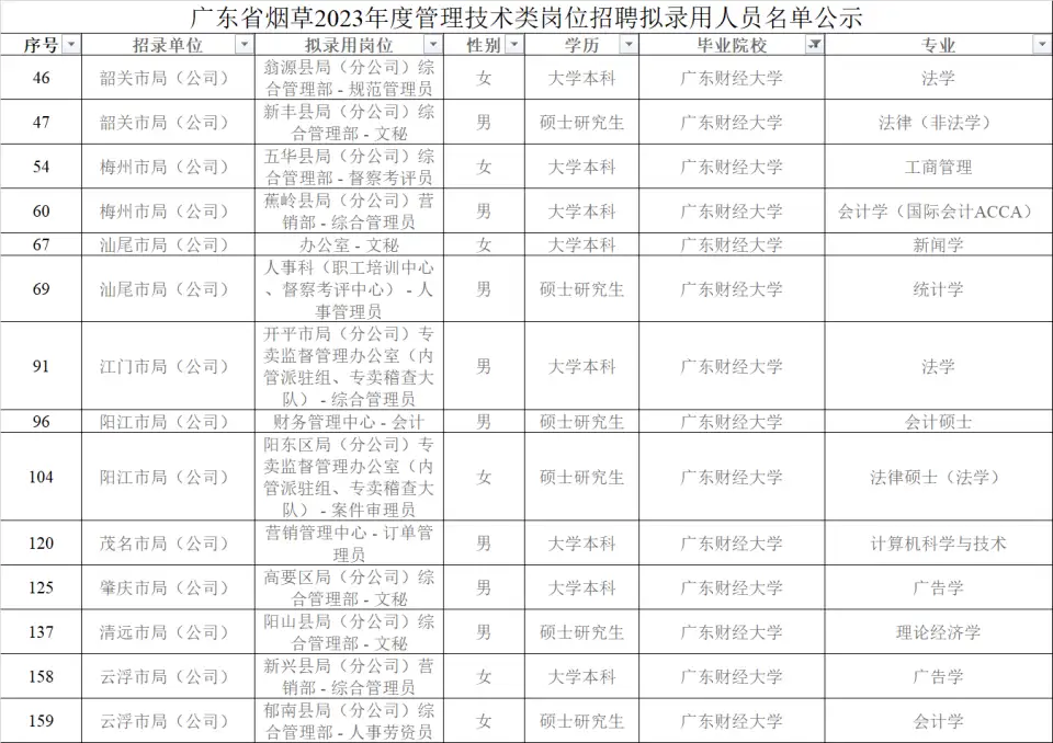 广东烟草录用166人,广东财经超中山大学登顶,前十全是省内高校