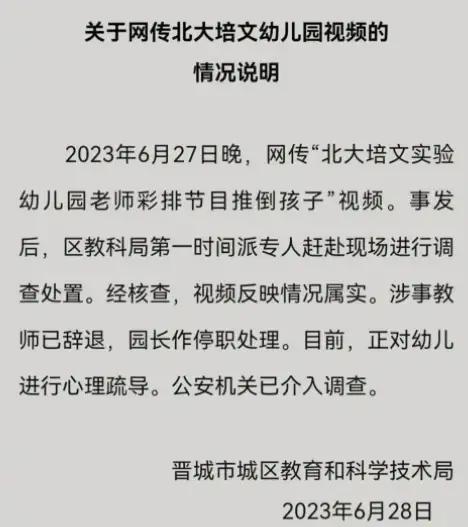 涉事教师已辞退,园长作停职处理