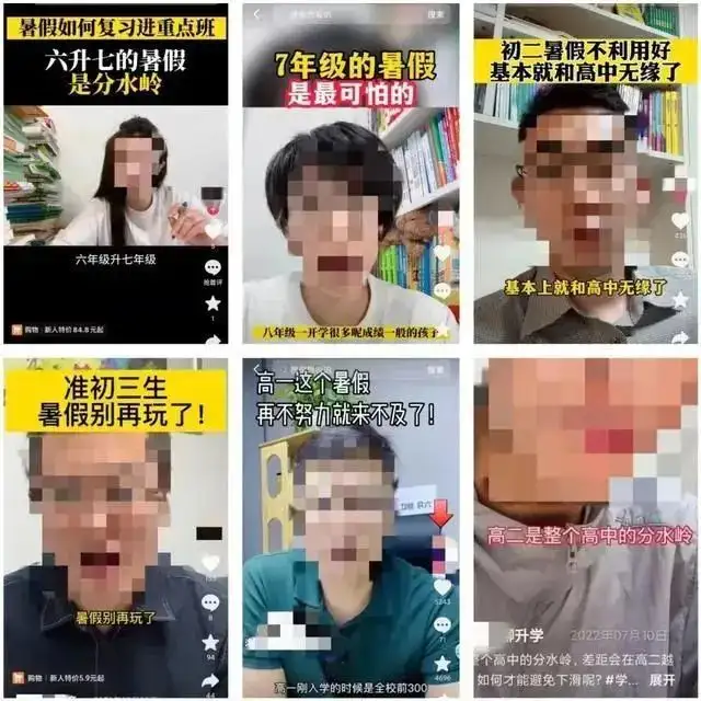 近日,一组“可怕的暑假”短视频截图引发广泛关注。在这组截图里,多家平台的博主们,均已“X年级的暑假是最可怕的”为噱头,通过这种语不惊人死不休的方式制造焦虑,从而获取平台流量。