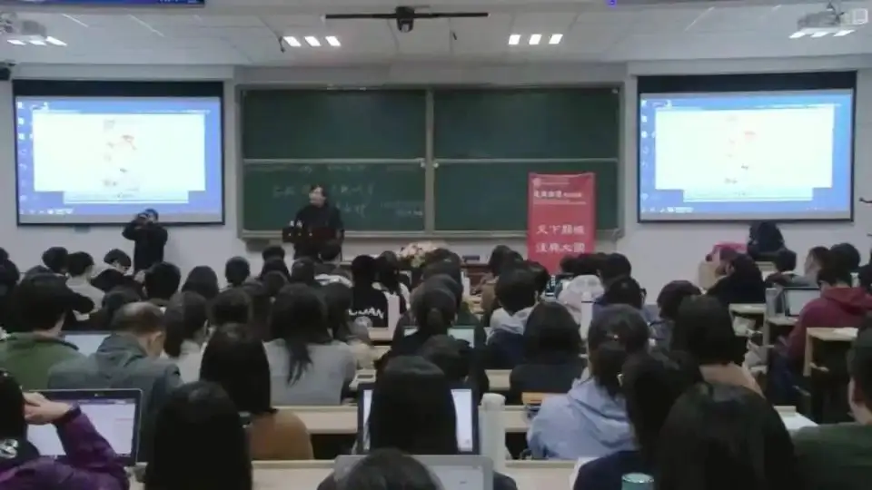 ·骆玉明的课堂总是坐得满满当当。图片来源:复旦大学微信公众号。
