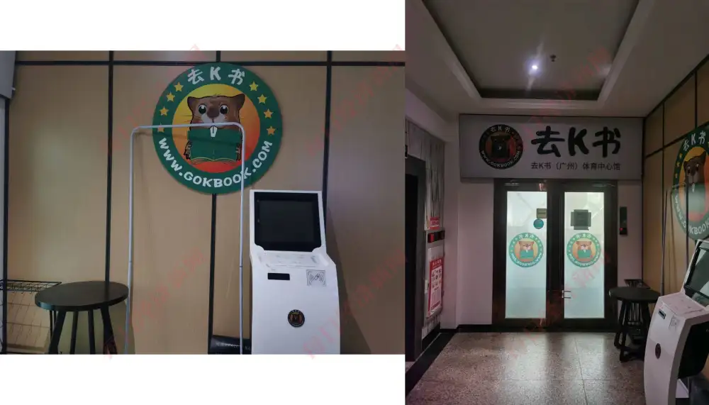 天河区的“去K书”位于体育东路的南方证券大厦4楼,记者在现场看到,在走廊上,“去K书,请由此方向前往”的指示牌仍贴在墙上,但根据指示牌来到的场馆看到的却是大门紧闭的景象,玻璃门上贴有由该大厦物业管理中心出具的“装修许可证”,公示日期是今年的3月31日,此外门口处还摆放着一部“去K书”的自助预约设备。