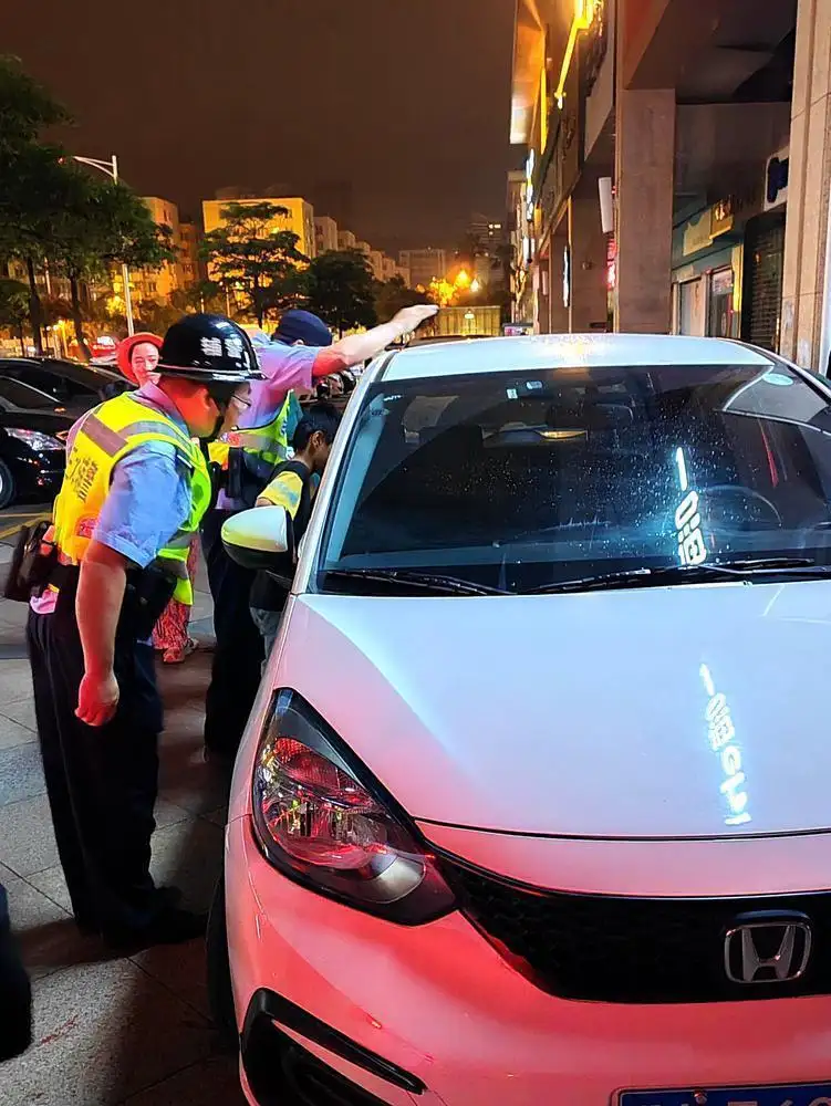 凌晨两点多,佛山三水西南同福路边,几名警辅人员和群众围着一辆白色小汽车,通过车窗不停向车内张望,这究竟发生了什么事?