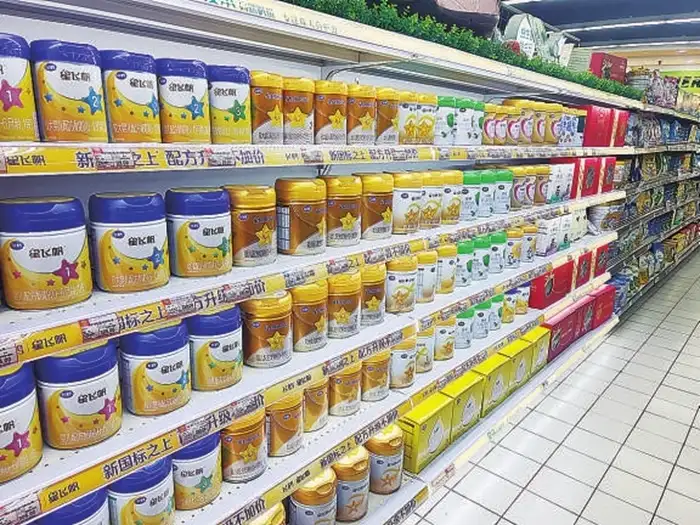 图:超市里销售的奶粉品牌和种类琳琅满目。