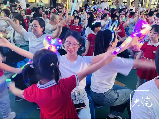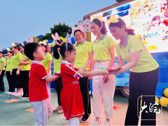 可爱的卡通背景、醒目的“毕业”主题、五色的灯带和气球、祝福感恩的贴画、美丽绽放的鲜花……当晚的翠微苑幼儿园内弥漫着满满的“毕业”元素,孩子和家长们争相在毕业背景墙上贴上名字并合影留念;临时设置的广场大屏幕上播放着精心剪辑的滚动视频,记录着三年的幼儿园欢乐瞬间,为孩子们打开一个个时间回忆“盲盒”,引得家长们纷纷举起手机……