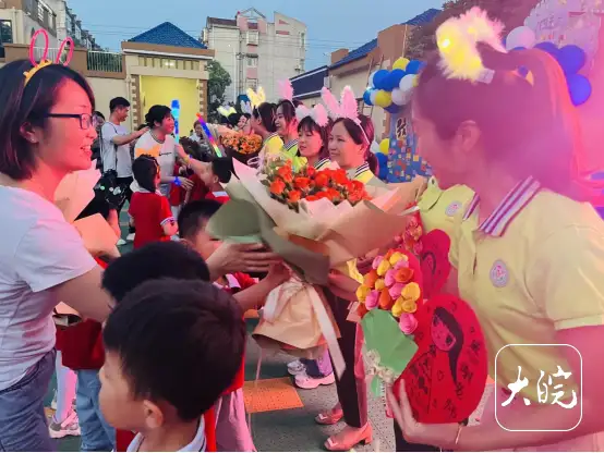 活动现场,孩子们挥舞着荧光棒,倾情表演《兔子舞》,希望未来“大展宏兔、前兔无量”;深情吟唱完《毕业诗歌》后,他们向十二位老师送上鲜花和集体签名的爱心卡,以实际行动诉说着对老师们的不舍与感谢,也向当初那个稚嫩的自己道声告别。临别之际,孩子们和老师们深情相拥,合影留念,很多老师和幼儿忍不住流下了热泪。