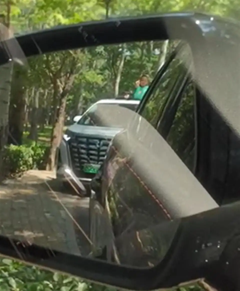 孩子从车顶天窗探出身子 (视频截图)