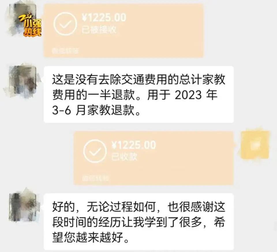 据了解,这两个月的时间里,冯女士支付了2400元的辅导费。这笔钱,她要求对方退还一半。冯女士当场拨打了女大学生的电话,是一位小黄姑娘。针对冯女士的质疑,小黄也有话要说:“无论是看书还是看手机,都是她孩子在做作业的时候,我看她儿子进入学习状态了,就不会一直盯着他,因为一直盯着反而会出状态,所以我会离他远一点。他做完之后,我会再跟他讲。”