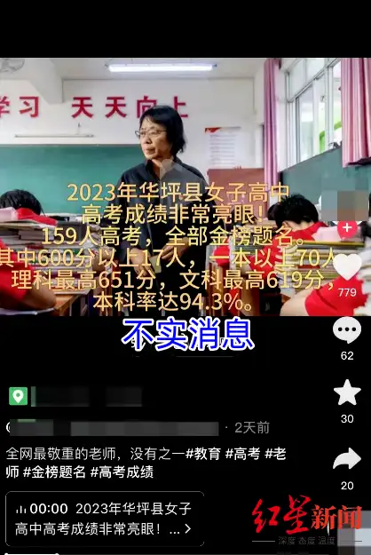 网传华坪女高2023年高考成绩“战况”,当地官方回应:均不实,未对外公布