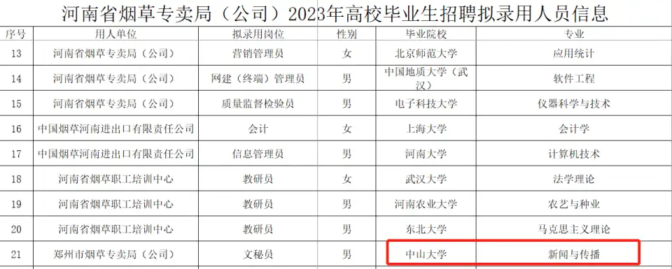 河南烟草录262人,河南农业超郑大登顶,同岗位有南大也有二本院校