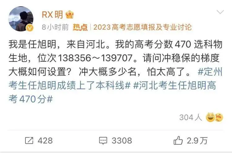 他的高考分数出来了,网友都在操心帮忙填志愿……