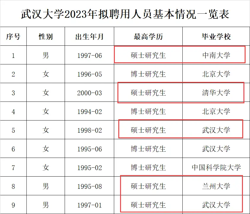 高校的行政岗位绝对是学历内卷最为严重的地方,比如武汉大学辅导员招聘要求已经是博士学历了,只有极少数的硕士才能通过简历筛选,最后录取结果也确实是这样,录取的32人中仅有9人是硕士,其余的23人都是名校博士了!
