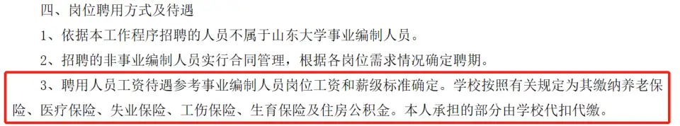 这样来看,山大这次招录的岗位虽然没有编制但是工作地点在山大这样的985高校,工作环境好,工资待遇其实参考事业编制人员岗位工资和薪级标准确定,意味着非编制岗位待遇与编制其实基本上差不多,然后还可以边工作边考虑考编制的问题,有985高校硕士选择也就可以理解的!
