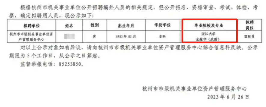 之前杭州市级事业单位公布了公开招录非编制司机岗位的聘用名单,其中录取的是一名浙江大学金融学的毕业生,一时间引起了轩然大波,没想到现在浙江大学金融学这样热门专业的毕业生居然也去当司机了,而且还没有编制,因此单位马上修改了录取结果,备注了是成人教育才平息大家的焦虑!