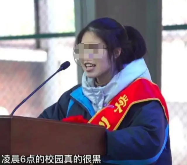 视频中,该女生说道:“没有人是生来的弱者,没有人是命定的草芥。我们可以不成功,但是我们绝对不能后悔。凌晨6点的校园真的很黑,但600多分的成绩真的很耀眼”。