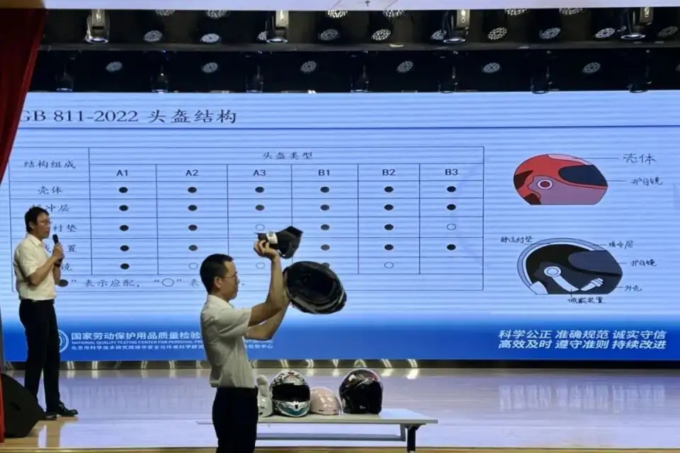 北京市科学技术研究院城市安全与环境科学研究所质检中心检验室主任许超提醒市民群众,今天起,《摩托车、电动自行车乘员头盔》新国标正式实施,选购头盔要去正规店铺购买有3C认证标志、符合新国标(GB 811-2022)的产品。