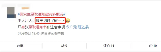 另外南开、武汉大学、清华、北师大等多校去年研究生录取通知书都是到付,很多网友吐槽“果然只有本科生是亲生的....”哈哈哈哈哈哈哈!