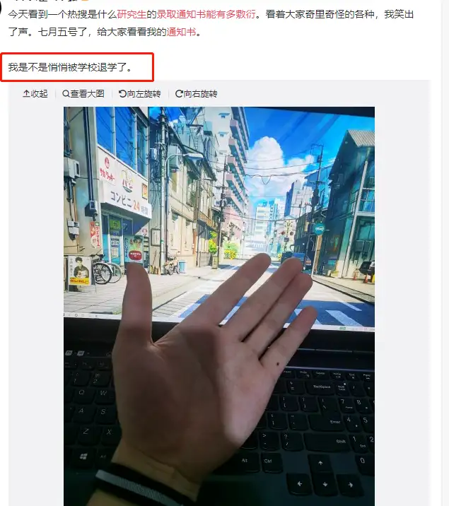 甭管敷衍不敷衍,人家至少收到录取通知书了!我呢?不会悄悄被学校退学了吧?(学校可能刚开始砍树……)