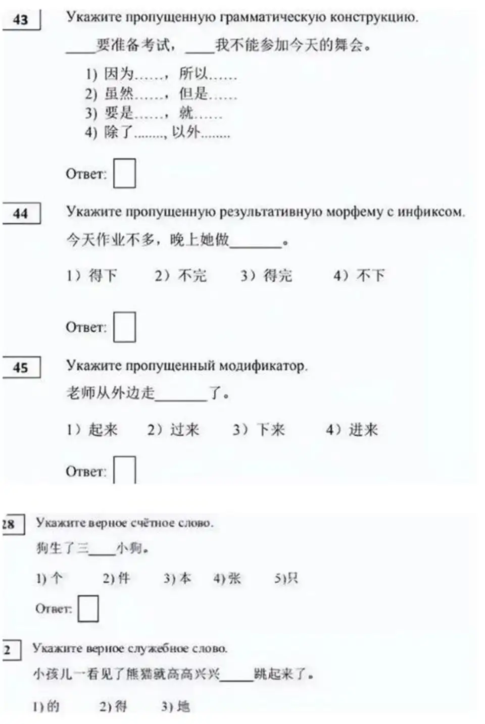 据悉,俄罗斯高考从2023年起也试行将汉语列入外语考试科目。网友也贴出了俄罗斯之前的高考部分中文题目,看看中国的学生能做对多少: