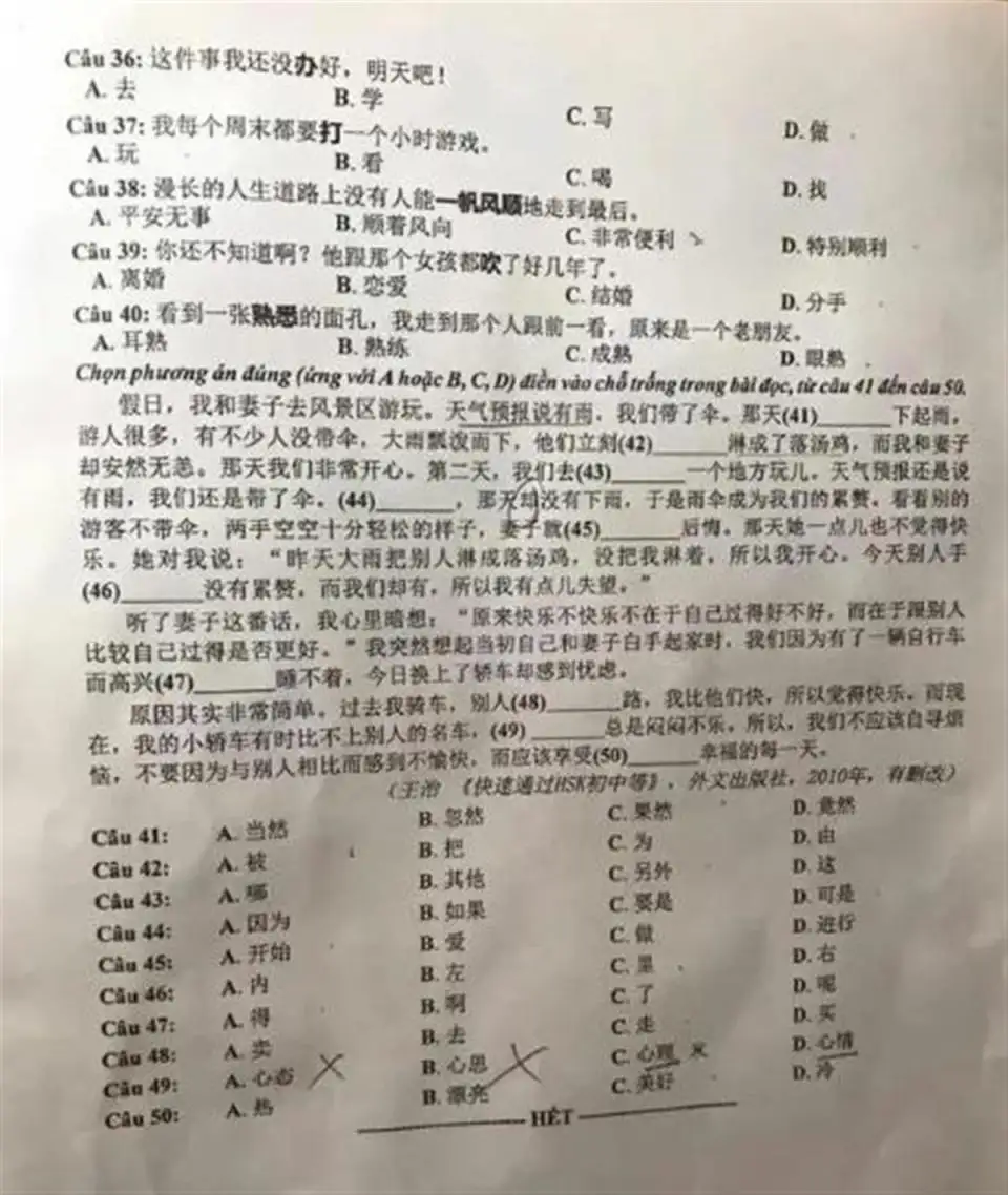 疑似越南高考中文题引热议,中国网友:感觉自己能当外教了