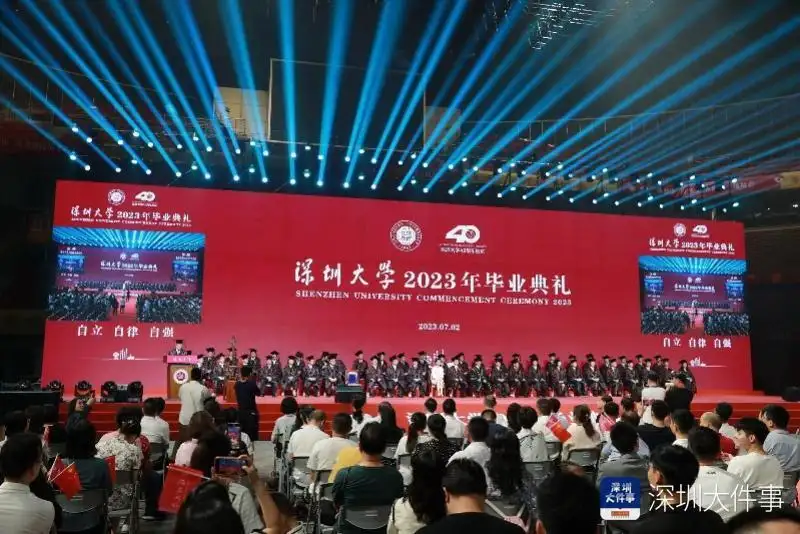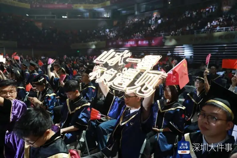 深圳大学今年举行的毕业典礼,是深圳历史上前所未有的毕业庆典,这也是深圳大学建校40年历史上最为声势浩大的毕业典礼。今年,深圳大学本硕博毕业生首次突破一万人。万余名深大毕业生身着学位服,参与、见证自己里程碑式的人生跨越。