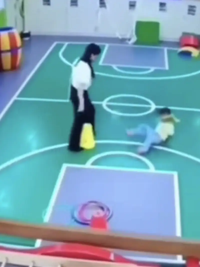 广西靖西市红黄蓝早教中心一老师被指在训练中推倒孩子。