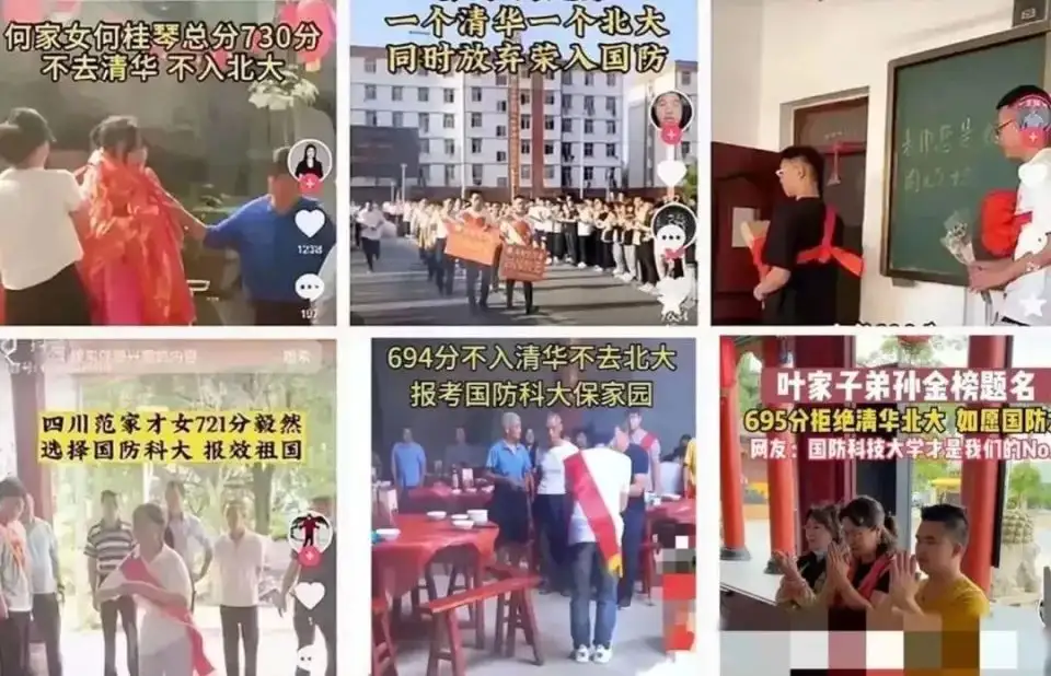 先是一则“细数清华五宗罪”的视频疯传,被辟谣后,这些营销号不依不饶,又搬出国防科大开辟“第二战场”,什么《风向变了,为何越来越多的超级学霸放弃清北,选择国防科技大学?》,什么《xx村高考学子出了6个700分以上,集体放弃清华,选择国防科大》……标题越起越邪乎,谣言越传越离谱,甚至惊动了“正主”。