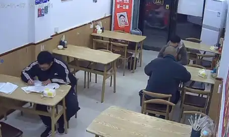 梅女士介绍,该男子并不是店里的常客,自己也不认识他,“当时我在里面忙,他吃过饭了,我小孩儿在他旁边桌子写作业,他直接就坐在小孩对面,说‘来,我看你写作业’,对方就是突然之间看见了就主动过去帮小孩儿辅导”,男子坐定辅导,一坐就是两个多小时,直到确认孩子写完作业,这才离开。