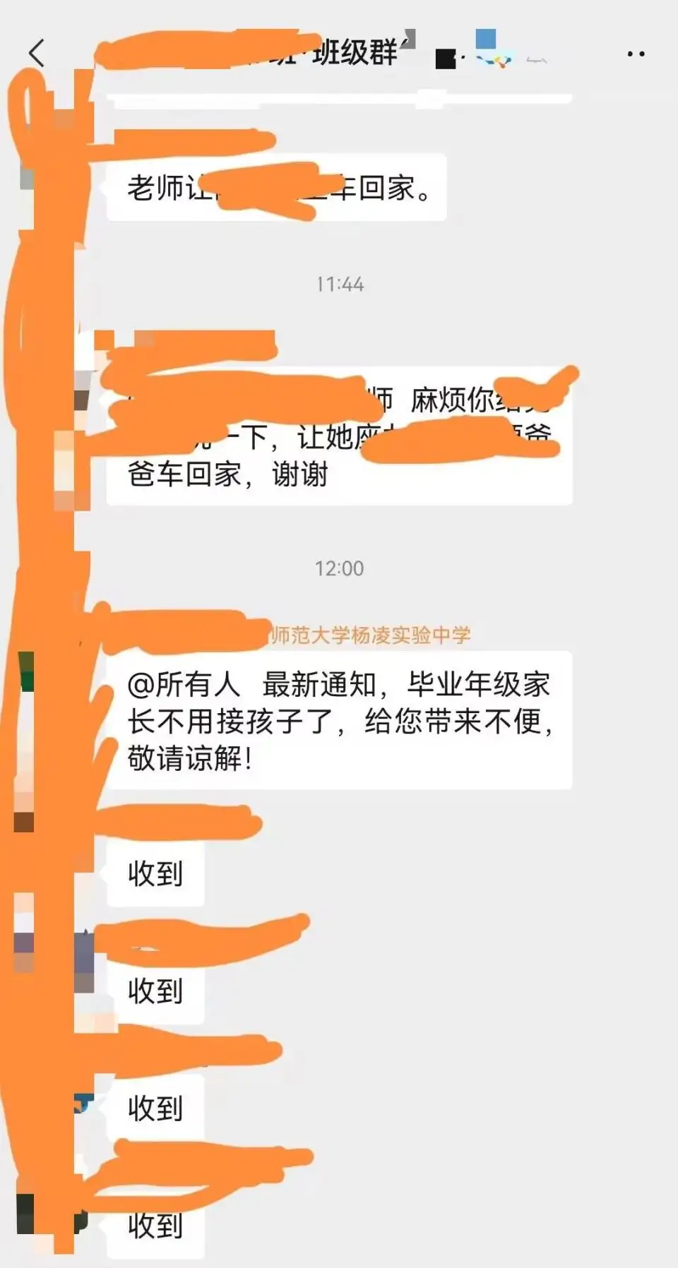 “后来又通知毕业年级家长不用接孩子,孩子又回去上学了。”该家长向大皖新闻记者提供的班级群聊天截图显示,“最新通知,毕业年级家长不用接孩子了,给您带来不便,敬请谅解!”该家长告诉记者,现在他的孩子已经回去上学了,但是不知道非毕业年级的学生有没有回校。