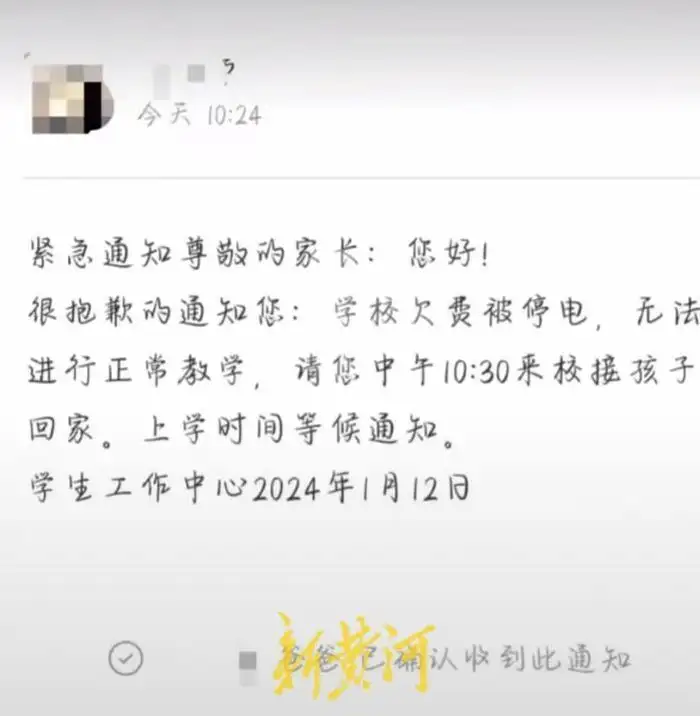 1月12日上午,有网友在社交平台发布信息称,陕西师范大学杨凌实验中学(以下简称“陕师大杨凌实验中学”)因欠费被停电,无法进行正常教学,学校因此发布紧急通知,要求学生家长来校接孩子回家。事件发生后,有学生家长对该校“欠费停电致学生停课”一事表示难以接受。