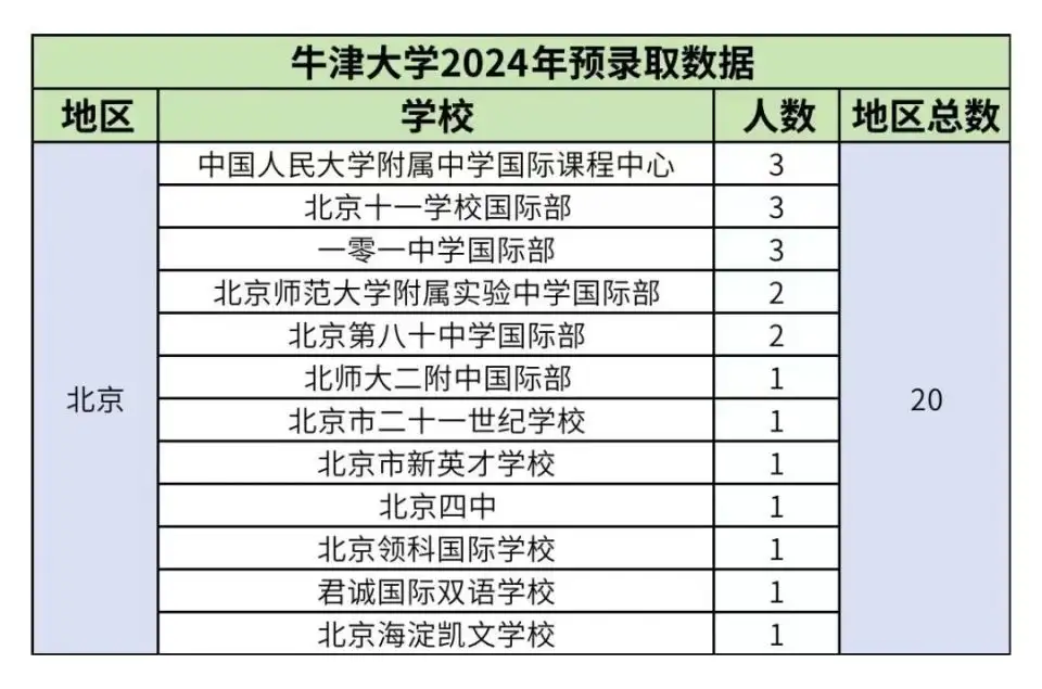 可以看到,北京地区上榜牛津大学offer的中学,大多是一些我们非常熟悉的“老面孔”。不过,与上海、广东地区均有个别学校表现亮眼、断层领跑的情况不同,北京学校获得的offer数量比较均衡。