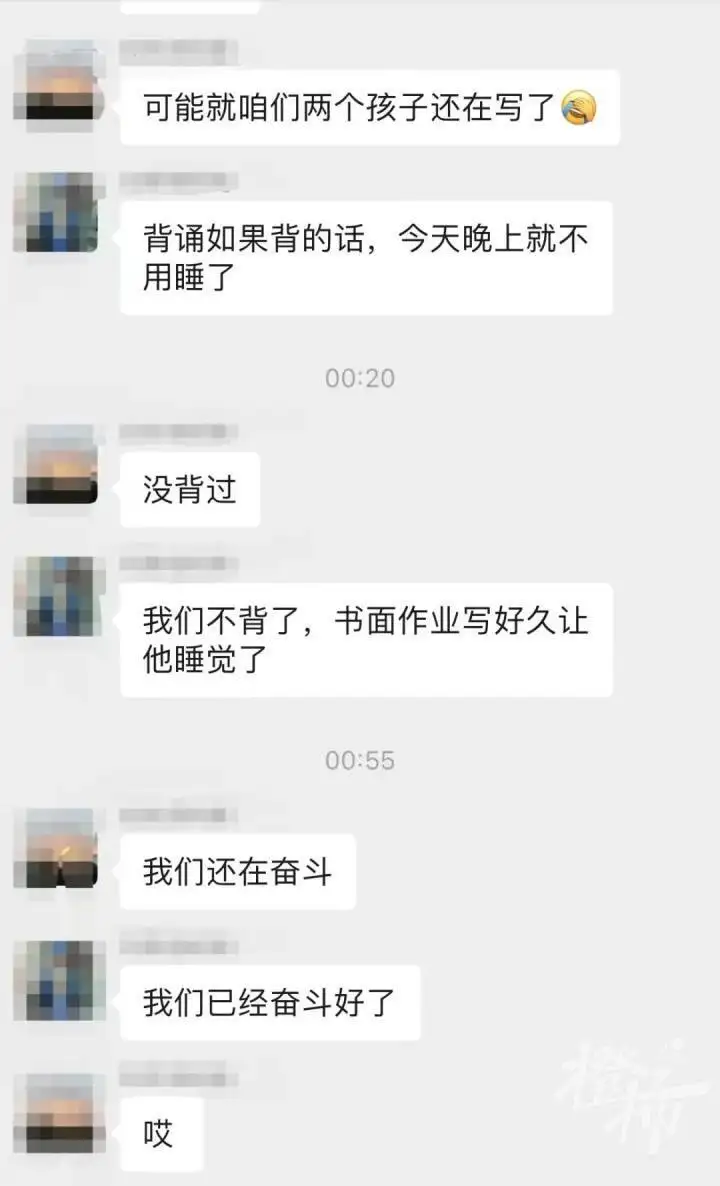 深夜11点多,他忍不住到家长群里吐槽,结果好多家长都表示“同病相怜”,甚至说“如果要背诵的内容都让孩子背出来的话,晚上就不用睡了。”