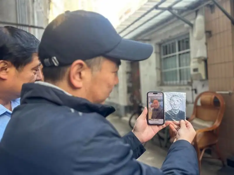 1月12日,在崔家村,王志强的家人对比他和其生父的照片。