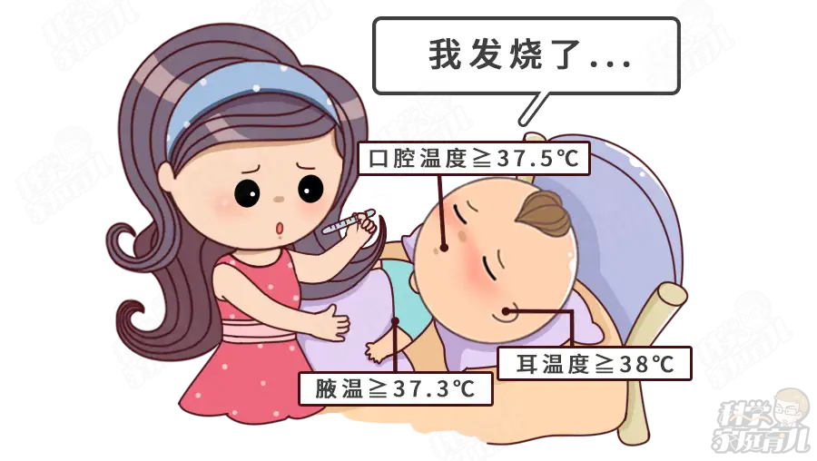 这个时候家长就可以拿出体温计来测一测,当腋窝温度≧37.3℃时,就是发烧了。