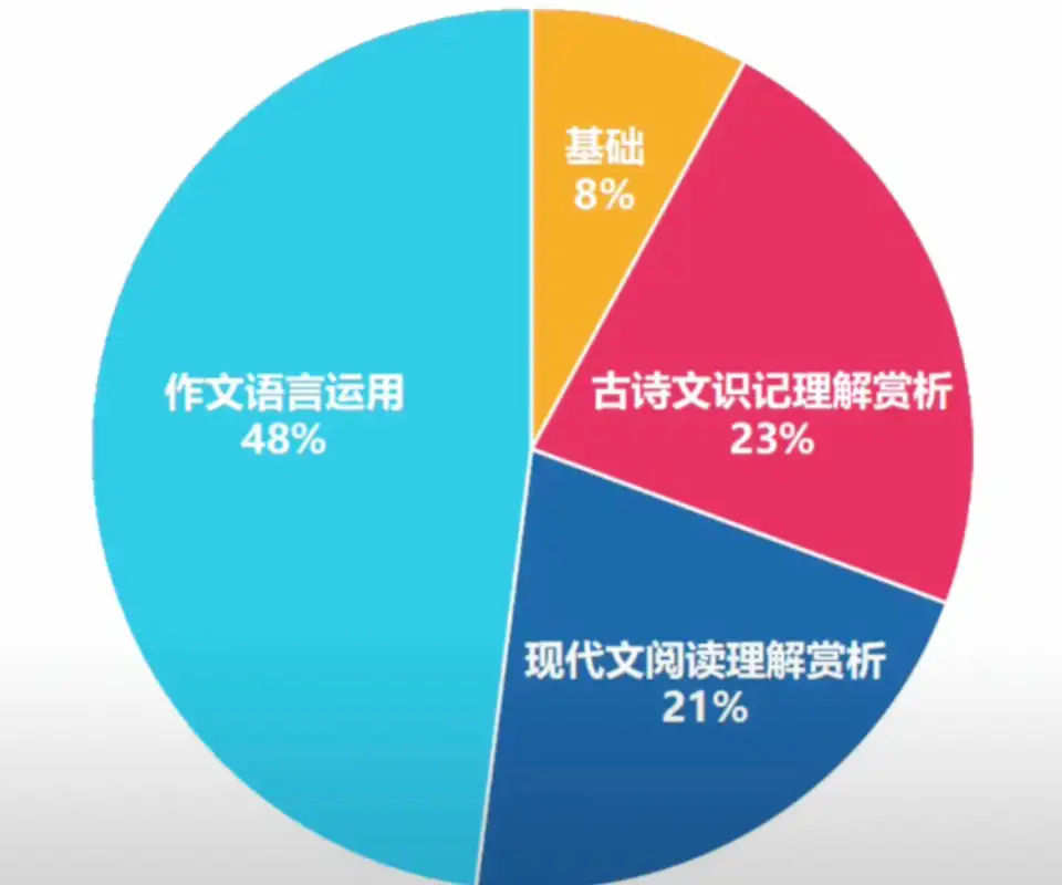 中学的语文考试中,作文语言运用占48%,现代文阅读赏析理解占21%,而这些都需要大量的阅读沉淀,才能拿到比较理想的分数。