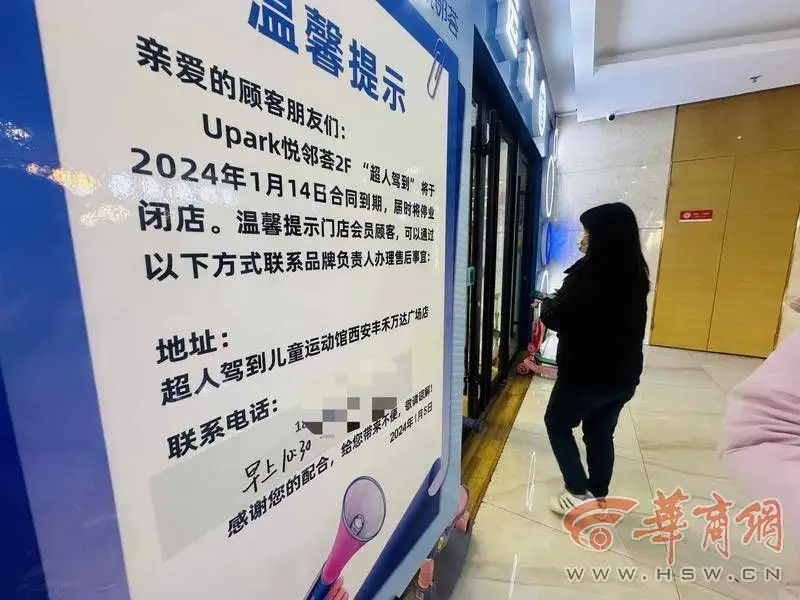 1月14日,华商报记者和王女士一起来到位于西安市矿山路悦邻荟商场的“超人驾到”儿童运动馆,记者看到,当天该机构还在上课,但是门口有温馨提示,上面写着:“悦邻荟2F超人驾到将于2024年1月14日合同到期,届时将停业闭店。温馨提示门店会员顾客,可以通过以下方式联系品牌负责人办理售后事宜:超人驾到儿童运动馆西安丰禾万达广场店。”还附了一个联系电话。王女士拨打该电话,接电话的正是该运动馆负责人,他在电话中说,这件事情晚上9点再说,随即挂了电话。记者再拨打这个电话,一直无人接听。