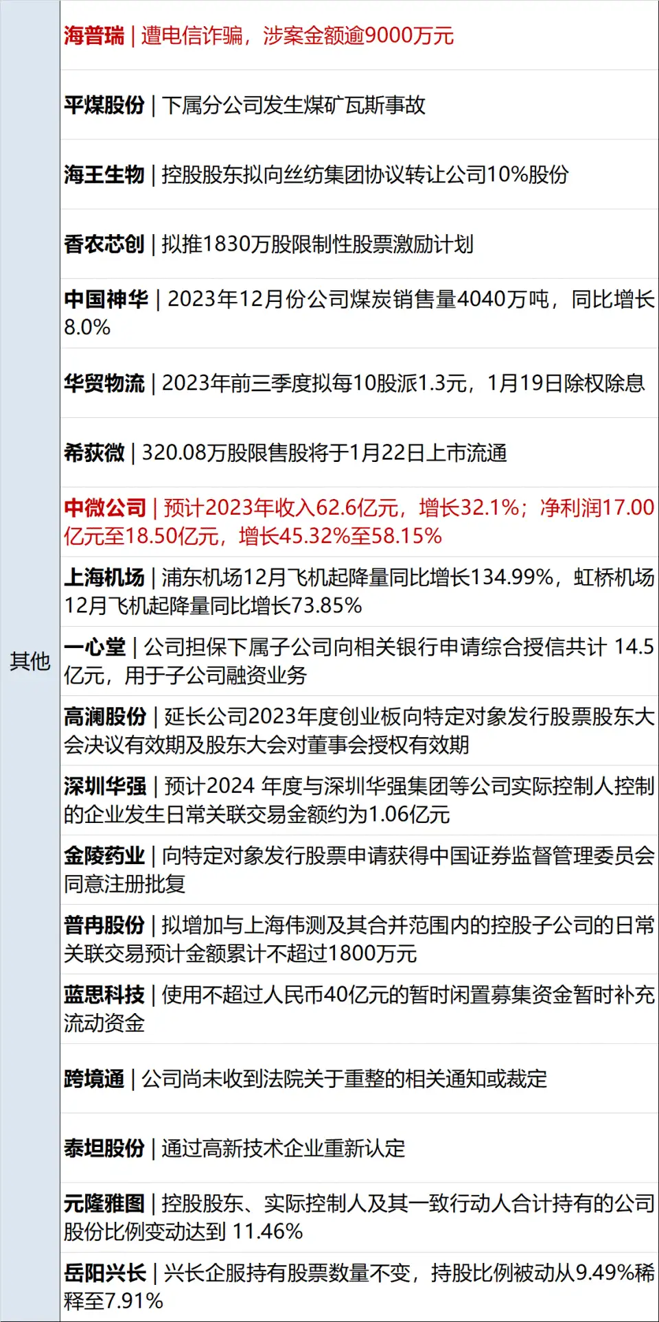 海普瑞(SZ002399,股价:10.78元,市值:158.2亿元):1月14日,海普瑞公告,公司全资子公司Techdow Pharma Italy S.R.L.近期遭遇犯罪团伙电信诈骗,涉案金额约1170余万欧元(约人民币9180万元)。案发后,公司第一时间向当地警方报案,警方已立案并开展案件调查办理工作。同时公司全力配合警方工作,争取最大限度避免损失。