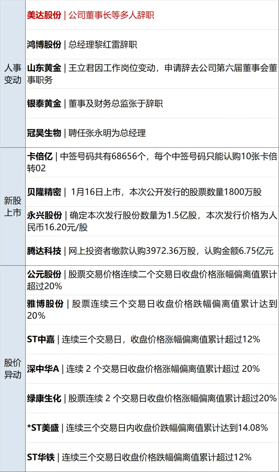 点评:多名高层集体辞职,可能对美达股份的管理层稳定性和未来战略决策产生影响,需要密切关注后续人事变动和公司发展动向。
