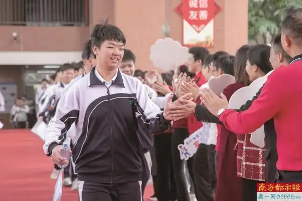 1月13日,深圳市福田区华强职业技术学校2021级高三1048名学生来到景田校区,斗志昂扬地走上红毯、穿过成功门,步入“3+证书”考试考场。该校学校党委书记贺英超、来自5个专业部21级高三的23位班主任、科任老师及工作人员在校门口红毯两旁为考生们加油鼓劲,为考生保驾护航。一句句加油、一声声叮嘱、一次次击掌、一个个拥抱,饱含着老师们对孩子们的关爱与祝福。
