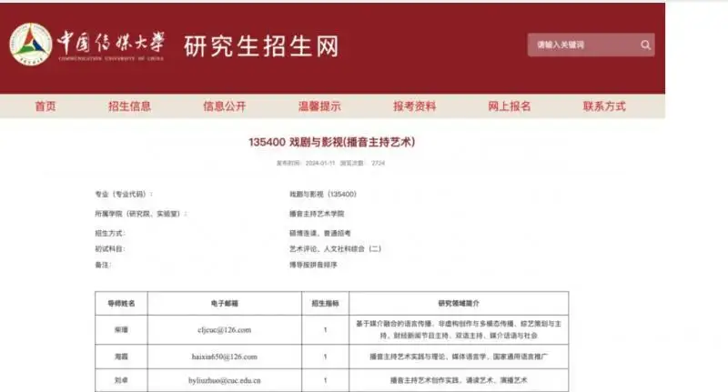 日前,在中国传媒大学发布的《2024年第二批博士学位研究生招生专业目录》中,《新闻联播》主播海霞以博士生导师的身份出现,研究方向为播音主持艺术实践与理论、媒体语言学、国家通用语言推广。